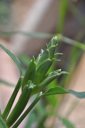 – Déposer les différents éléments sur un lit de terre. Laisser en intérieur, dans une atmosphère à 18 – 20°C minimum. Laisser germer. Cette étape peut prendre 1 à 2 mois. Arroser un peu mais pas trop (environ 1 fois par semaine voir 2) sinon, les rhizomes risquent de pourrir…